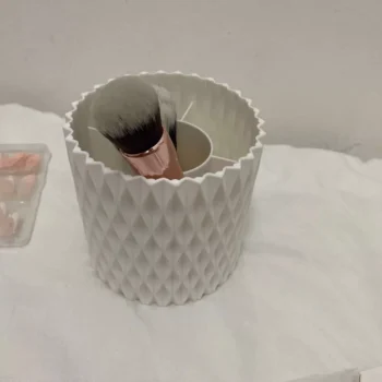 Transform your makeup routine with our 360° Rotating Makeup Brush Storage Box. This luxurious and portable cosmetic organizer is designed to keep your brushes, lipsticks, and other beauty tools neatly arranged and easily accessible. Its elegant white design adds a touch of sophistication to any vanity or desktop, making it a must-have for beauty enthusiasts and professionals alike.