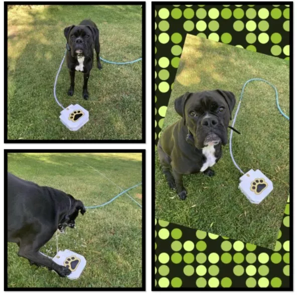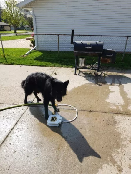 My buddy, Foster, loves water! Normally, in the summer, I will go outside with him and hold the hose up and let him chase the water. He loves it but I can't do that as often as I'd like so the product is definitely what he needed.