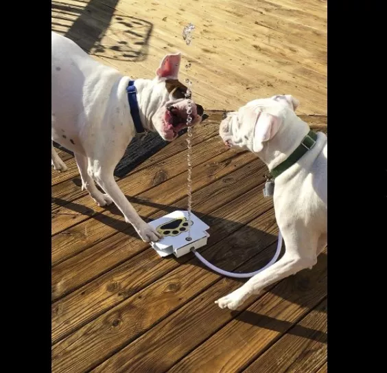 Your furry best friend does all the work. Here’s the detailed installation instruction: take Automatic Outdoor Dog Water Fountain and a garden hose. Connect the Water Fountain to the hose. Screw the hose into the two-way splitter (or directly onto your water valve) and let your fluffy friend enjoy drinking process! Our Automatic Outdoor Dog Water Fountain also requires no batteries or controller or anything fancy.