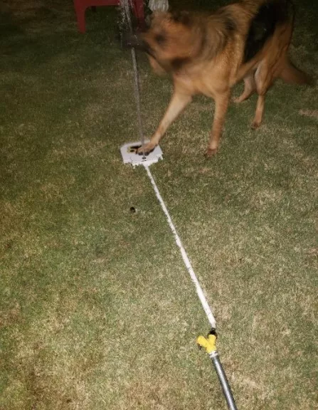 I was looking for a drinking hose/fountain for my dog and came across this one. It arrived yesterday and was very easy to hook up the hose. It will take a little patience and training but my dog loves it!