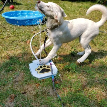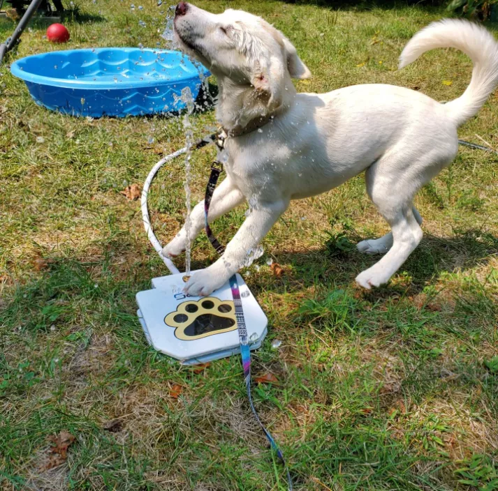 My dog, and kids, had so much fun with this! Easy to install! Kept them busy for a good 30 mins :) whenever we took it out, the dog would go crazy. The only downfall is he never figured out how to step on it, I wish the push button was off the device. He knew the water would spray out and he couldn’t avoid getting it in the face.