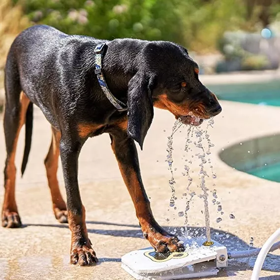 From the minute it was assembled, my pup LOVES this! Thought he would have a hard time figuring it out, but he took to it right away. MAKE SURE you’re home to let your pup out to pee A LOT after he/she uses the fountain or you‘ll have some accidents to clean up in the house. They drink a lot of water when they use this so don’t be upset if they have to urinate a lot! I only let my pup use the sprinkler for 10-15 minutes, or so, because I don’t want to mess up his potassium levels and cause a trip to the vet, or worse. Check with your vet on safe time periods for your pup to use the sprinkler.