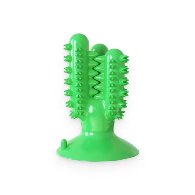 This nifty cactus takes care of the dog’s mouth and reduces discomfort when pups are teething. You can apply some toothpaste to make the brushing more effective. Put some dry food in the toy to slow down the chewing process, and help the dog with its digestion.