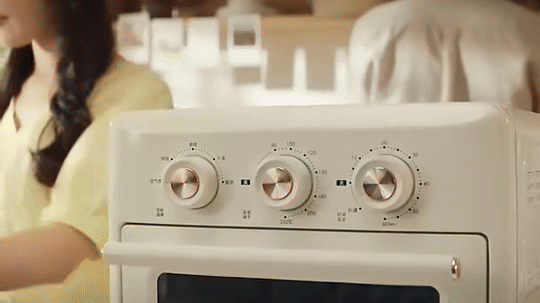 Gotta say, I picked this out mainly 'cause of its cool retro vibe and it's not too bulky. Really into having lots of counter space to work with. What we've got here is essentially a tiny convection oven, which is perfect for stuff like toast, reheating leftovers, baking, and whipping up single-serve meals. Totally in love with it. And it looks super cute in its spot. It's got this brushed steel look, and the controls are old-school knobs, which I way prefer over digital. My other half was leaning towards something bigger, but honestly, this little gem is just right. So happy we got it!