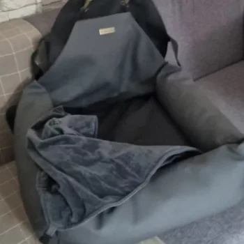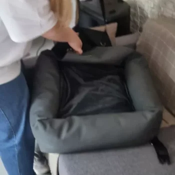 Create a cozy and safe place for your pet in the car with our soft booster seat. And of course, don’t forget to secure a dog safety belt to the loop in the fold!