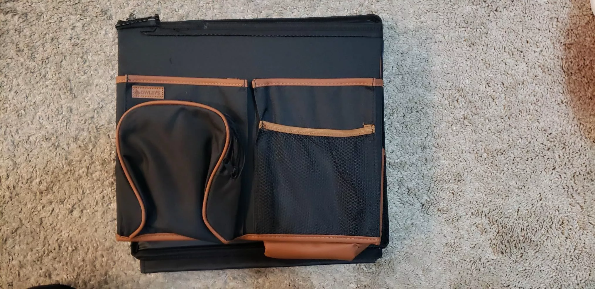 Large compartment with a removable divider, eight side pockets and two front pockets can hold everything you need on the road – from drinks to gadgets. It is suitable for all car models, and you can use it in your front seat, back seat, or even in the trunk. Plus, the lid works as a backseat table!