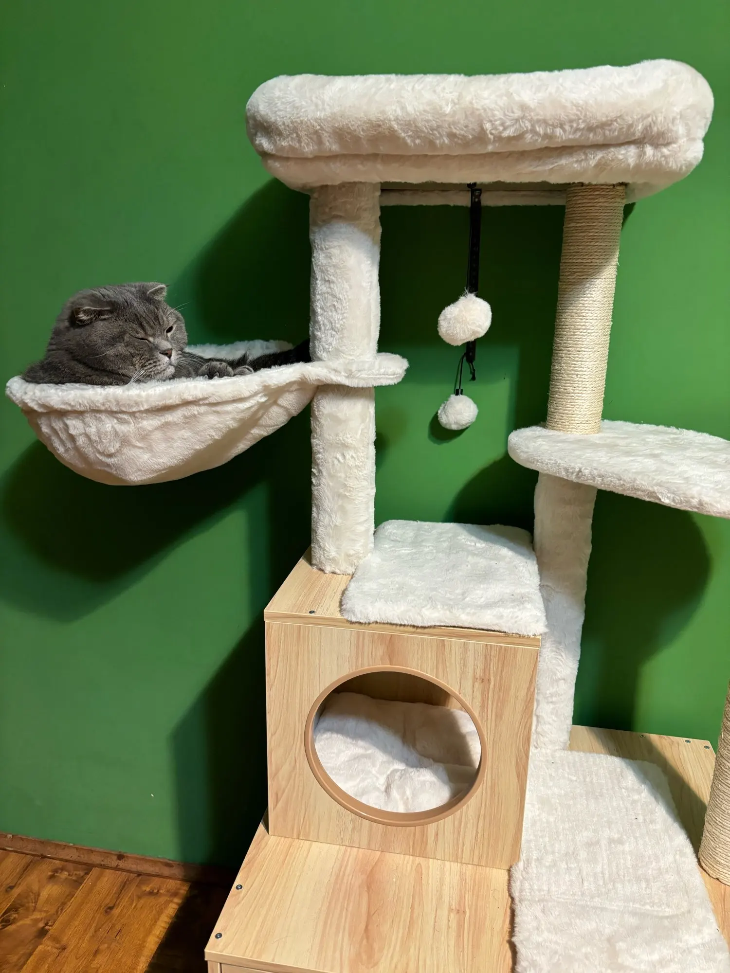 With its blend of style, functionality, and comfort, our Luxury Wood Cat Tower is the perfect addition to any home. Give your cats the gift of their own special retreat where they can play, scratch, and rest to their hearts’ content. Don’t wait to transform your pet’s life for the better. Order now and witness the joy and satisfaction this cat tower brings to your feline friends.