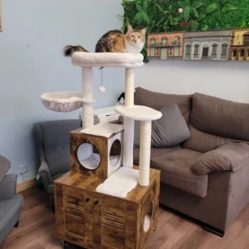Our cat tower stands out for its multifunctionality and premium materials. The foldable litter box, included for free, makes this an unbeatable value. It’s not just a piece of furniture; it’s a comprehensive solution for your cat’s needs. Easy to assemble and designed to accommodate 2-3 cats simultaneously, it’s suitable for both single and multi-cat families. The use of healthy, environmentally friendly materials ensures your cat’s wellbeing, making it the perfect choice for conscientious pet owners.