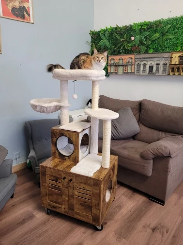 • Constructed from eco-friendly wood, ensuring durability and cat safety.