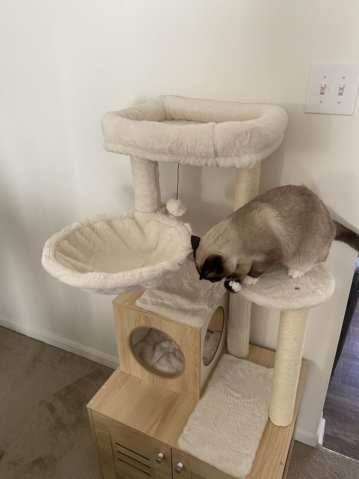 Luxury Wood Cat Tower with Condo, Scratching Posts & Foldable Litter Box