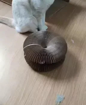 My cats are absolutely in love with this scratch board. It’s more than just a simple scratch post—it’s their new favorite playground! The corrugated surface is ideal for their claw grinding needs while the bell toy keeps them engaged and entertained. I particularly appreciate its foldability which makes it easy to store when needed, and being able to connect two boards together provides even more space for them to roam around.