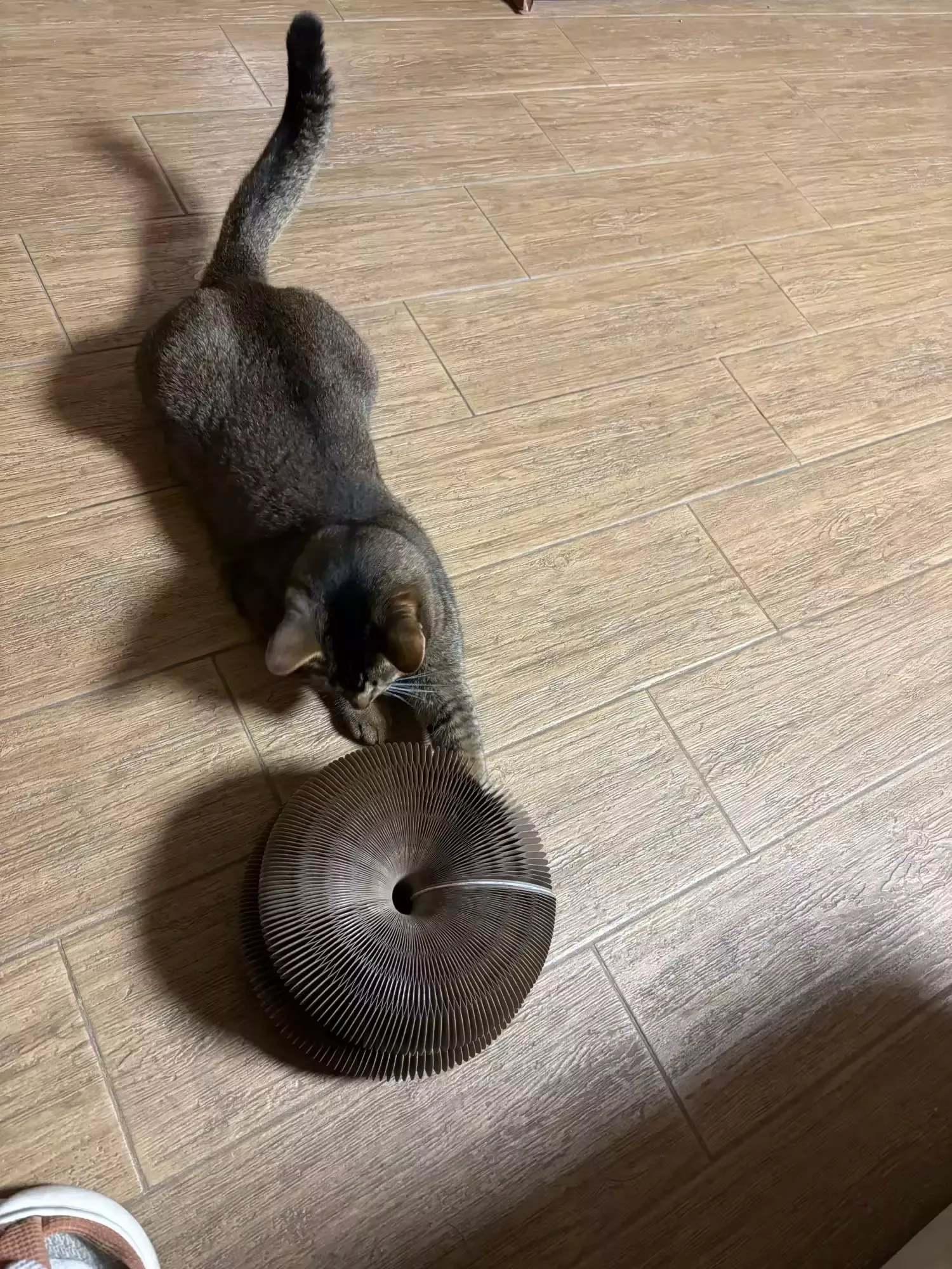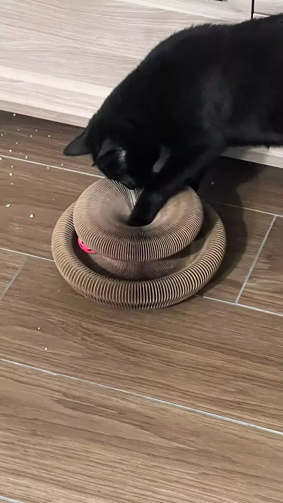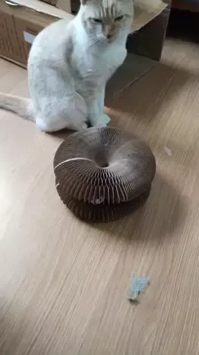 our kitty loves his new scratch board. even more so because of the added bell toy which keeps him entertained for hours on end. 🐾🔔