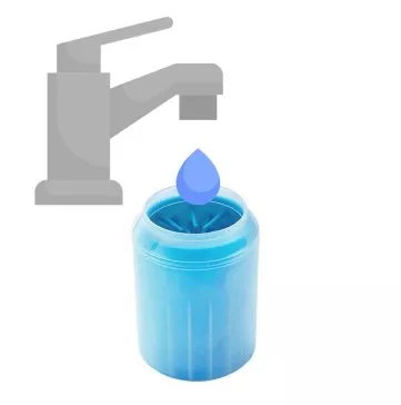 Fill up one paw cleaner with warm water (soap can be added too if desired).